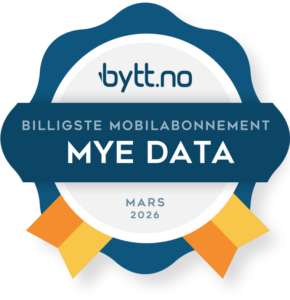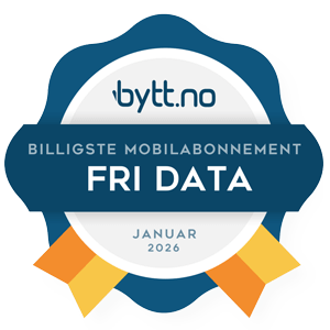 *Fri bruk gjelder for inntil 10.000 min/sms/mms i Norge og i EU/EØS. **Inkludert mobildata kan brukes i Norge og i EU/EØS. Egne priser fra Norge til utlandet (også til EU/EØS), spesialnummer, bruk utenfor EU/EØS, samt for fly/båt/satellitt. Hastighet vil variere etter dekning og andre forhold. ***Hastighet: Fri data + har ingen hastighetsbegrensning innenfor det 5G nettet kan tilby. Fri Data er begrenset til 15 Mbit/sekund.