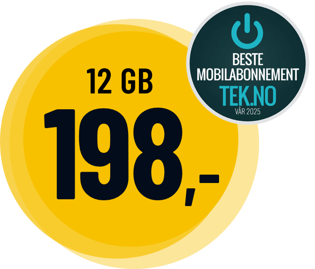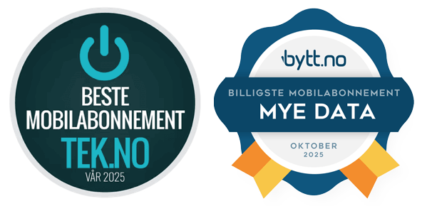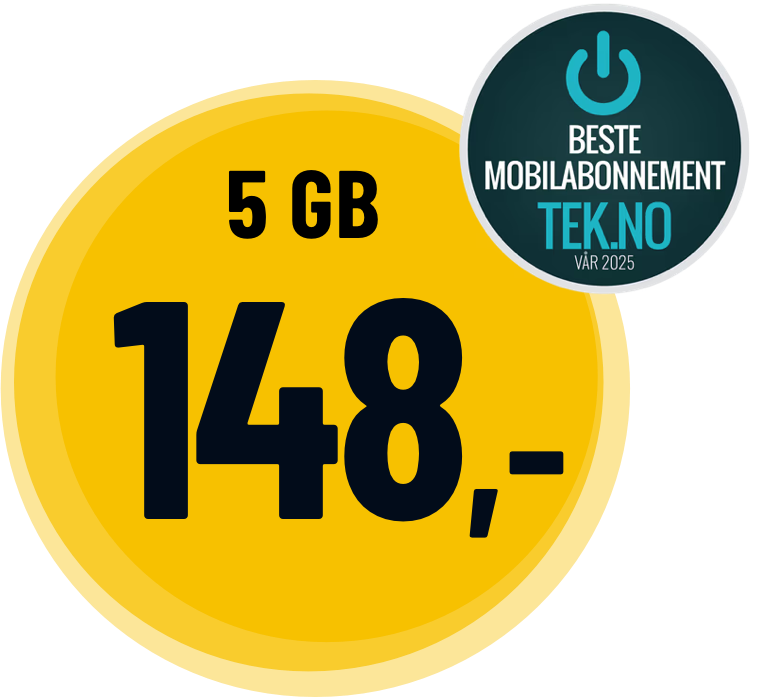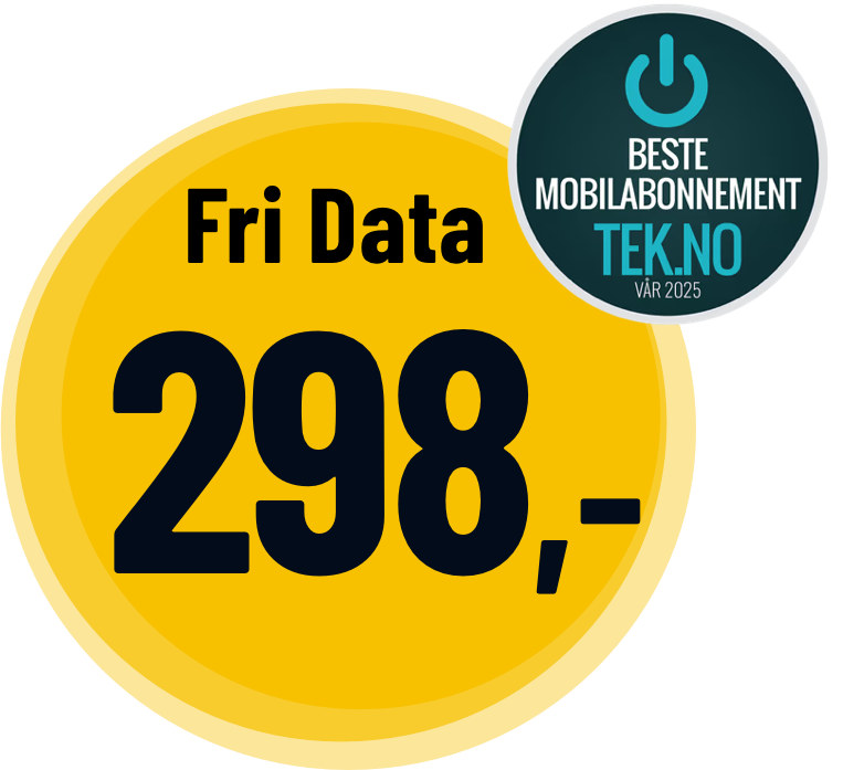 *Fri bruk gjelder for inntil 10.000 min/sms/mms i Norge og i EU/EØS. **Inkludert mobildata kan brukes i Norge og i EU/EØS. Egne priser fra Norge til utlandet (også til EU/EØS), spesialnummer, bruk utenfor EU/EØS, samt for fly/båt/satellitt. Hastighet vil variere etter dekning og andre forhold. ***Hastighet: Fri data + har ingen hastighetsbegrensning innenfor det 5G nettet kan tilby. Fri Data er begrenset til 15 Mbit/sekund.
